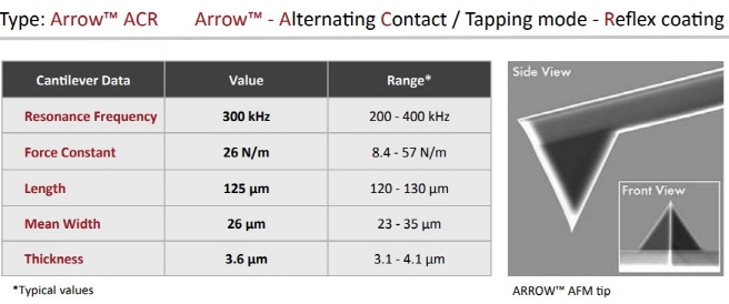 Arrow ACR AFM tips offer the same mechanical properties as the well-known Olympus+ AC160 AFM probes and are designed for non-contact or tapping mode imaging.