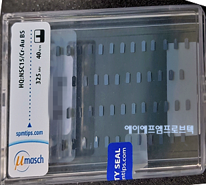 HQ:NSC15/Cr-Au BS HQ:NSC15/Cr-Au BS-15 , HQ:NSC15/Cr-Au BS-50, HQ:NSC15/Cr-Au BS-100 ´ÜÀ§ÆÇ¸Å Gold Coated Soft Tapping Mode AFM Probe Coating: Reflective Gold • AFM Cantilever F 325 kHz C 40 N/m L 125 µm *nominal values