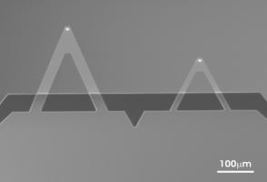 qp-BioT qp-BioT-10 / qp-BioT-20 / qp-BioT-50 ´ÜÀ§ÆÇ¸Å • uniqprobe¢â - uniform quality AFM probe for non-contact / tapping mode / contact mode, with 2 different triangular AFM cantilevers, backside partial Au coating uniform quality SPM probe XY-auto alignment with Alignment Chip 2 cantilevers • C1 = 0.3 N/m; fo1 = 50 kHz • C2 = 0.08 N/m; fo2 = 20 kHz