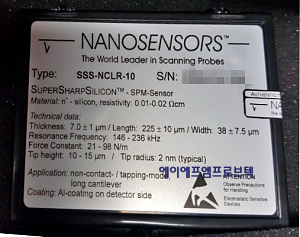 SSS-NCLR SSS-NCLR-10 / SSS-NCLR-20 / SSS-NCLR-50 ´ÜÀ§ÆÇ¸Å • SuperSharpSilicon¢â AFM probe, silicon AFM cantilever for non-contact / tapping mode, long AFM cantilever, with SuperSharpSilicon¢â AFM tip, detector side: Al coating • Non-Contact Long AFM cantilever • Back side Reflex coating • C = 48 N/m; fo = 190 kHz