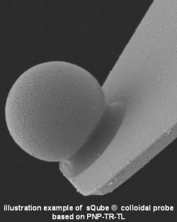 CP-PNP • Colloidal probe -Please Choose Sphere material: • Colloidal probe -Please Choose Sphere material: 1. Au-Gold(Au) Sphere diameter A = 1,5 ¥ìm - 3 ¥ìm, B = 3 ¥ìm - 5,5 ¥ìm, or C = 5,5 ¥ìm - 9 ¥ìm 2. BSG-borosilicatglas(BSG) Sphere diameter of 0 = 2.5 µm, A = 5 µm, B = 10 µm, or C = 20 µm, (all +/- 10%) 3. PM -polymethylmethacrylat (PMMA) Sphere diameter : A = 1.5 µm, B = 3.36 µm, C = 6.44 µm, D = 9.57 µm, or E = 14.59 µm (all +/- 5%) 4. PS-polystyrol (PS) Sphere diameter: A = 1.98 µm, B = 3.6 µm, C = 6.1 µm, D = 10.8 µm, or E = 14.45 µm (all +/- 5%) 5. SiO-silicon dioxide (SiO2) Sphere diameter A = 2 µm, B = 3.5 µm, C = 6.62 µm, D = 10.2 µm, or E = 15 µm (all +/- 5%)
