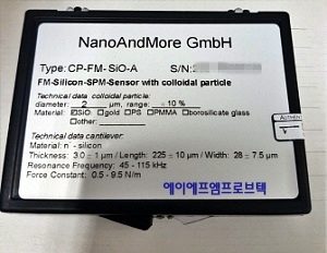 CP-FM-SiO Colloidal AFM probe, AFM cantilever with round AFM tip like a ball. Manufacturer: sQube Coating: none AFM tip shape: Sphere, Silicon Dioxide Sphere Diameter: 2.1 - 15 µm AFM Cantilever F 75 kHz C 2.8 N/m L 225 µm sphere material: silicon dioxide (SiO2) Sphere Diameter: 2 - 15 µm excellent sphere diameter: A = 2 µm, B = 3.5 µm, C = 6.62 µm, D = 10.2 µm, or E = 15 µm (all +/- 5%) Please choose A, B, C, D, or E when ordering!