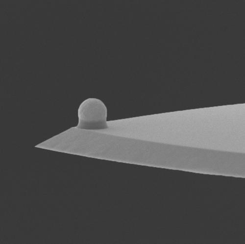 CP-qp-SCONT-Au Colloidal AFM probe, AFM cantilever with round AFM tip like a ball Manufacturer: sQube Coating: Reflective Chromium/Gold AFM tip shape: Sphere, Gold Sphere Diameter: 1.5 - 5.5 µm Sphere diameter A = 1,5 ¥ìm - 3 ¥ìm, B = 3 ¥ìm - 5,5 ¥ìm, or C = 5,5 ¥ìm - 9 ¥ìm AFM Cantilever F 11 kHzC 0.01 N/mL 125 µm *nominal values