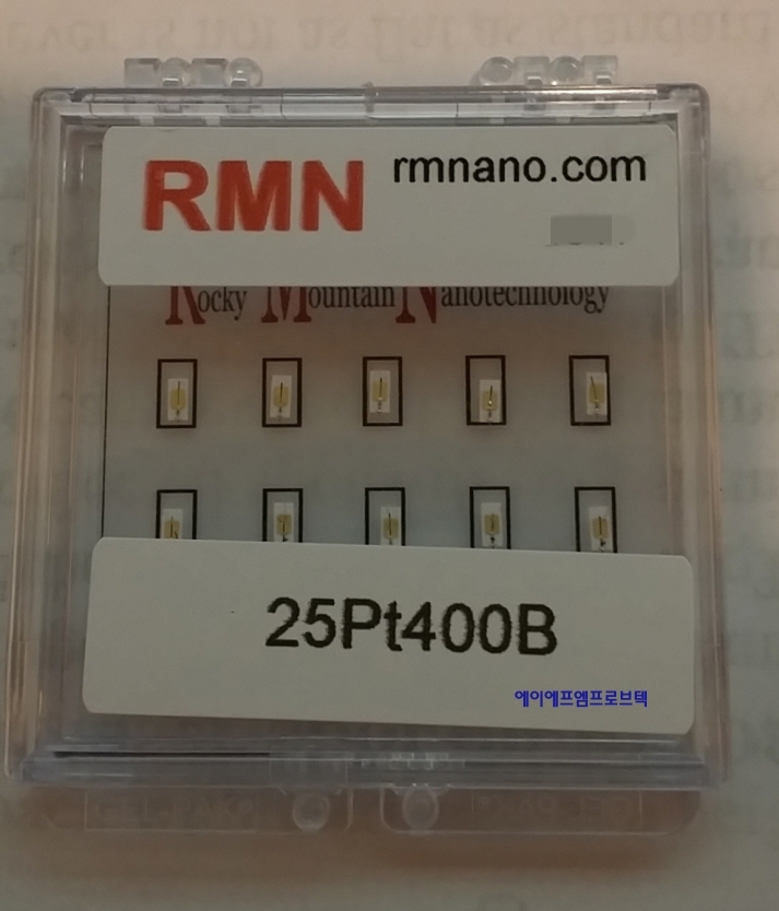 •The 25Pt400B is similar to the 25Pt300B, but with a lower spring constant. These probes are ideal for C-AFM,SCM,SMM,SMIM applications. •Tip shank length: 80 ¥ìm (¡¾ 25%) •Cantilever length: 400 µm (¡¾ 15%) •Cantilever width: 110 µm (¡¾ 15%) •Spring constant: 6 N/m (¡¾ 40%) •Frequency: 9 kHz (¡¾ 30%) •Standard tip radii below 20 nm